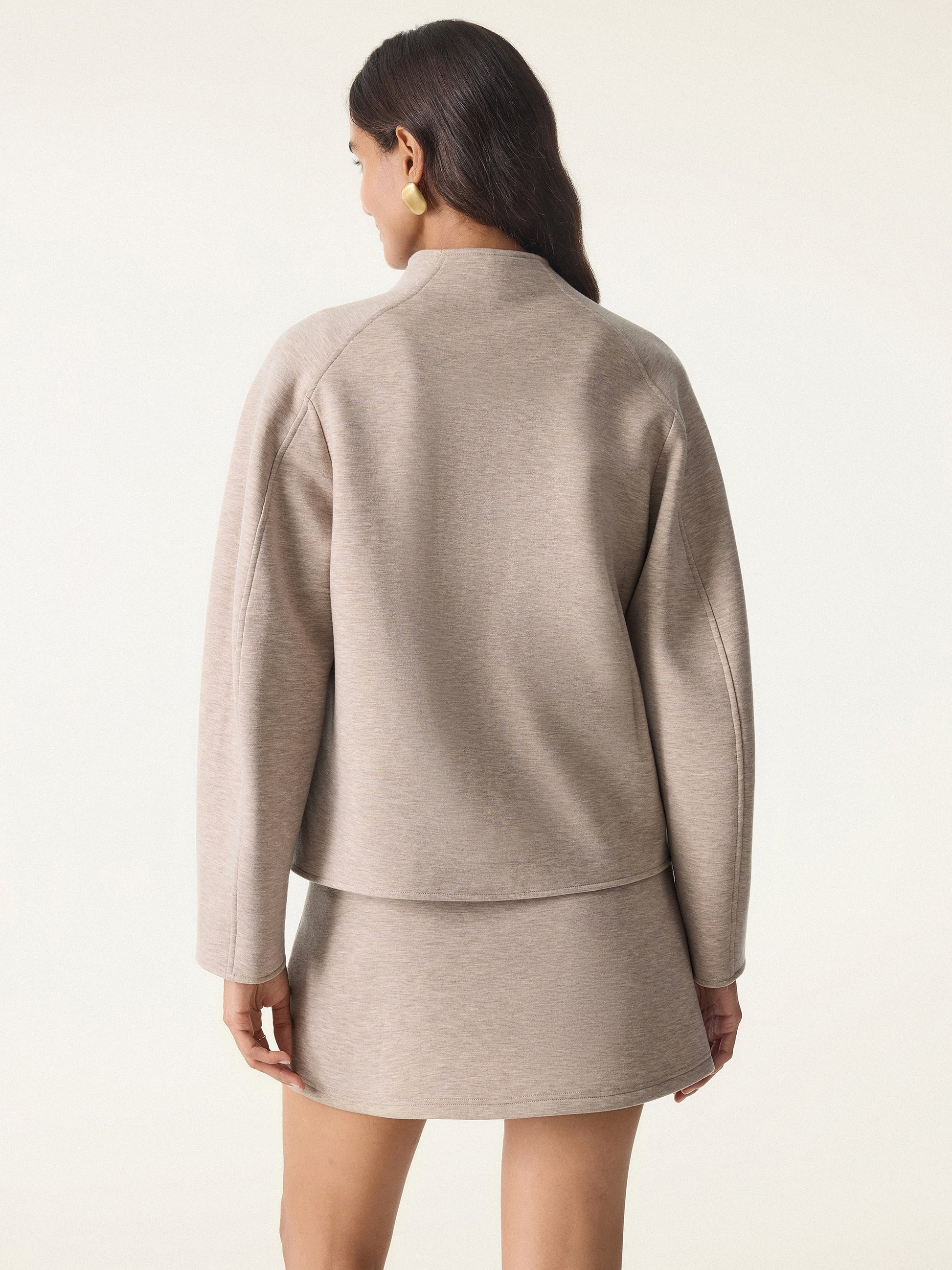 2Pcs Set Stand Collar Jacket & Double Waistband Straight Pants with Pockets