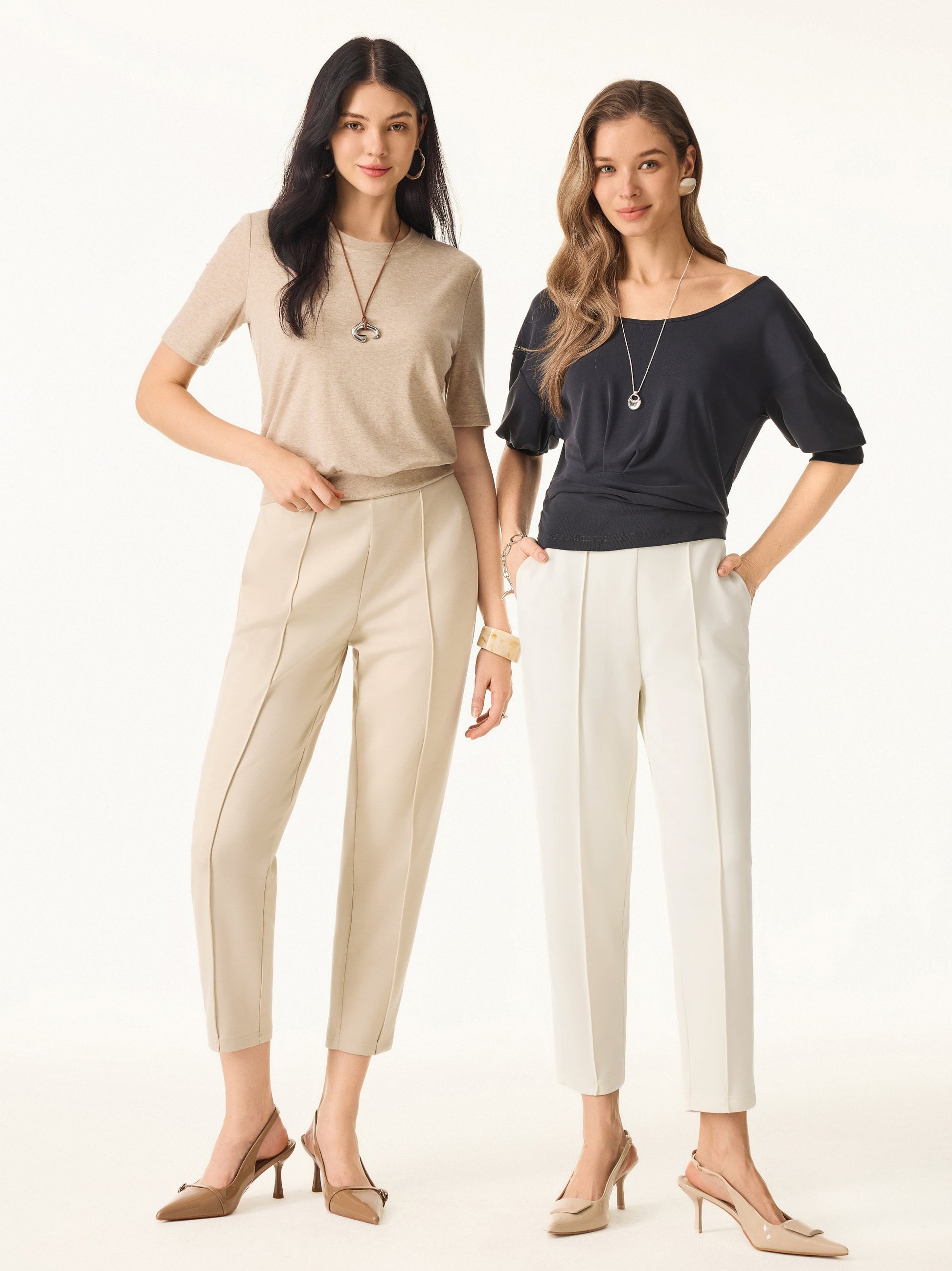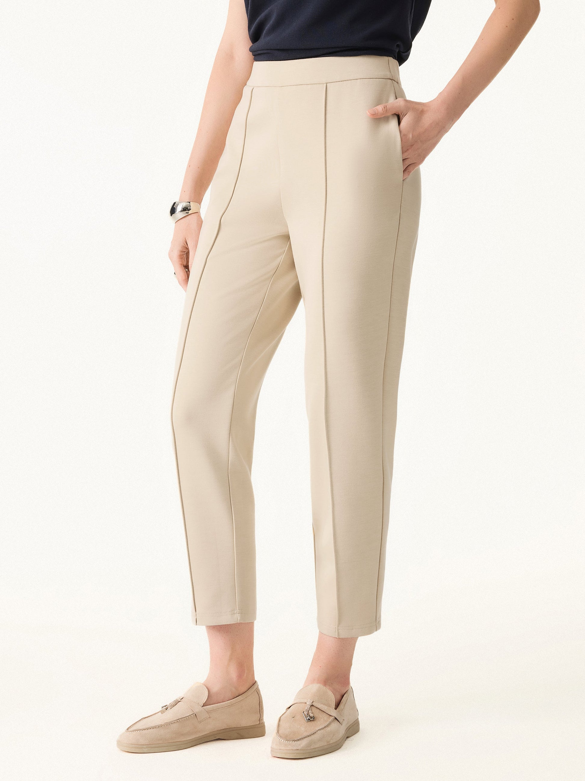 Mid Rise Cropped Tapered Leg Pull-on Pants with Pockets
