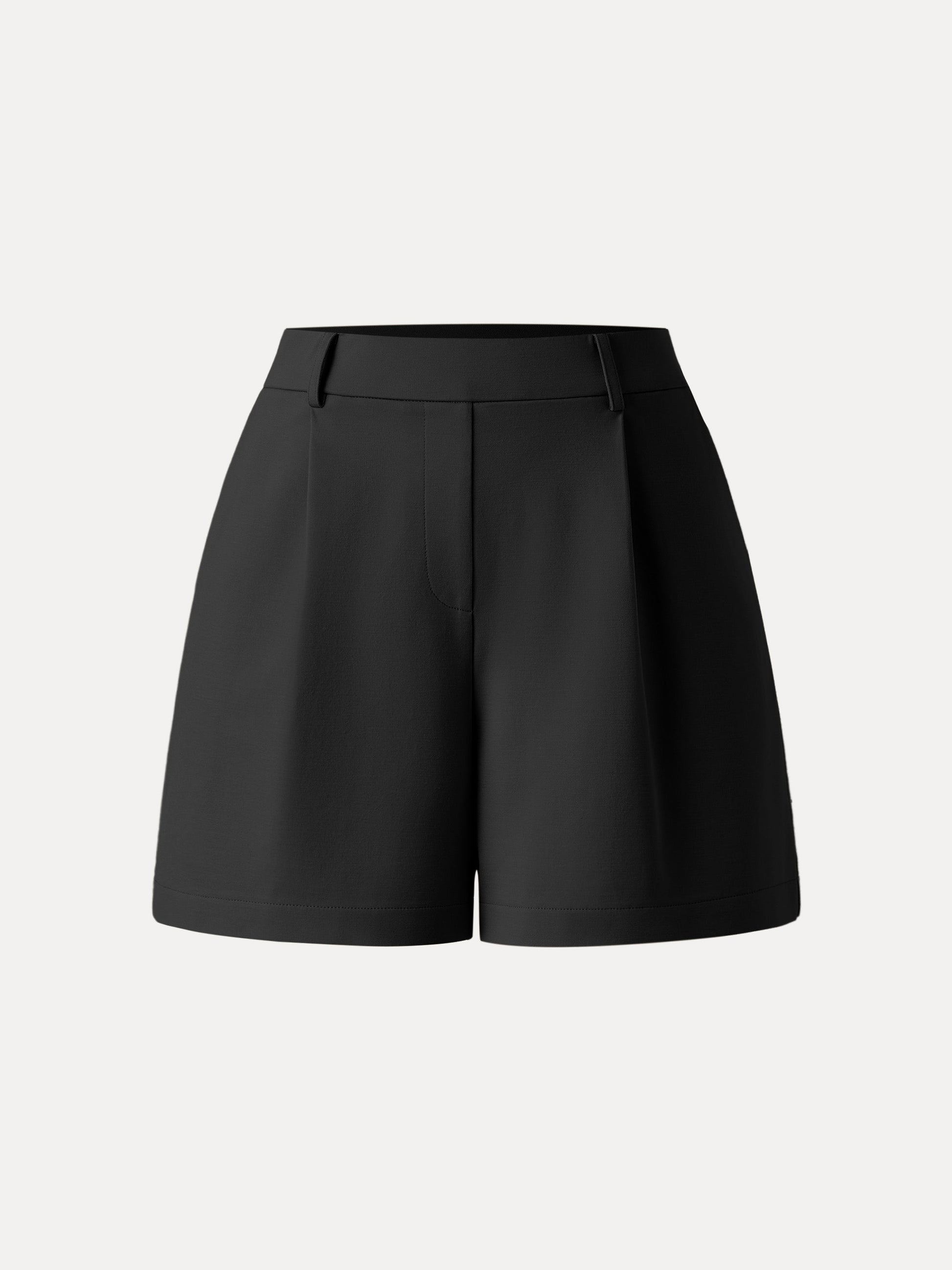 Mid Rise Smart Pleated Pull-on Shorts with Pockets