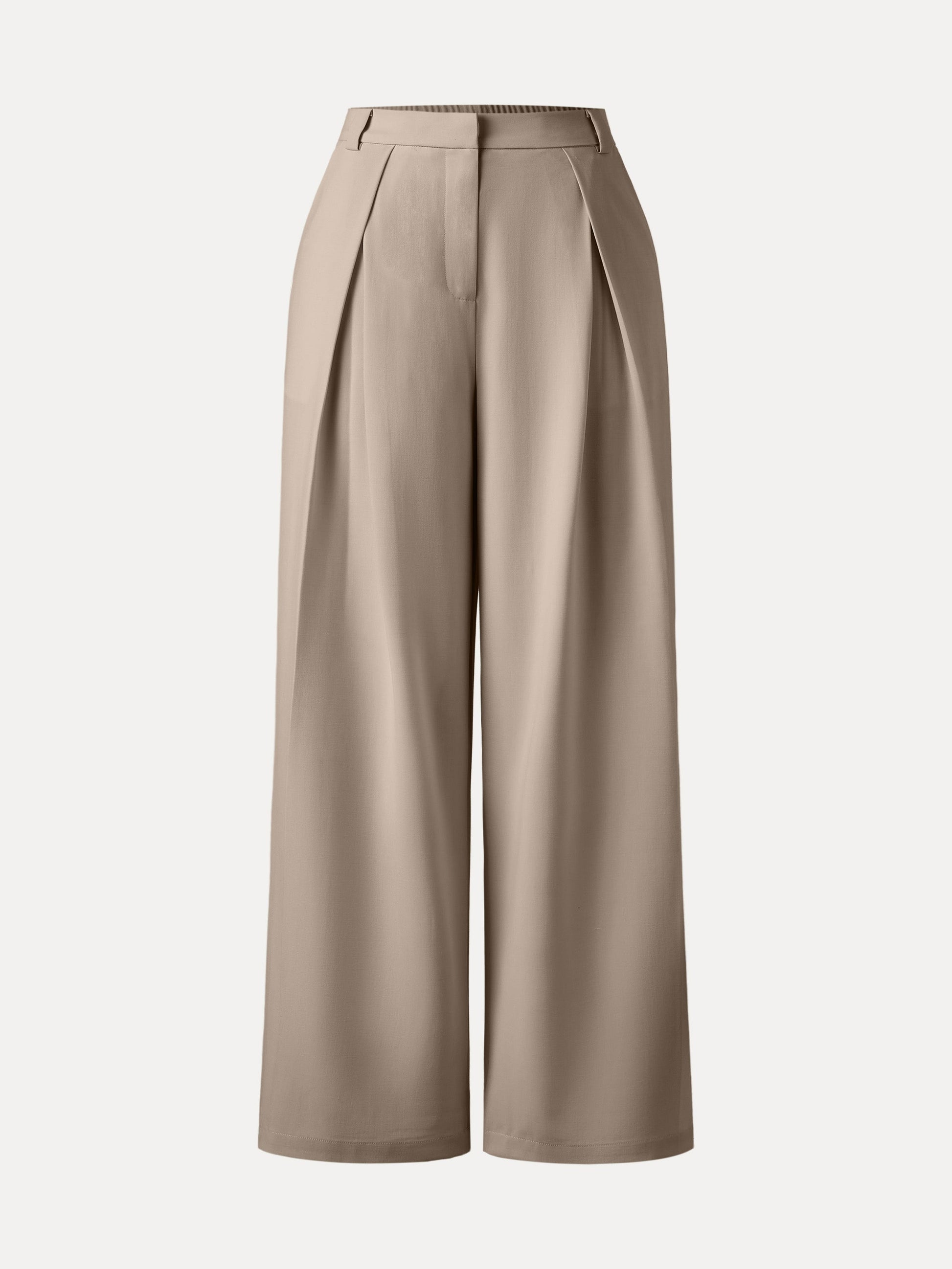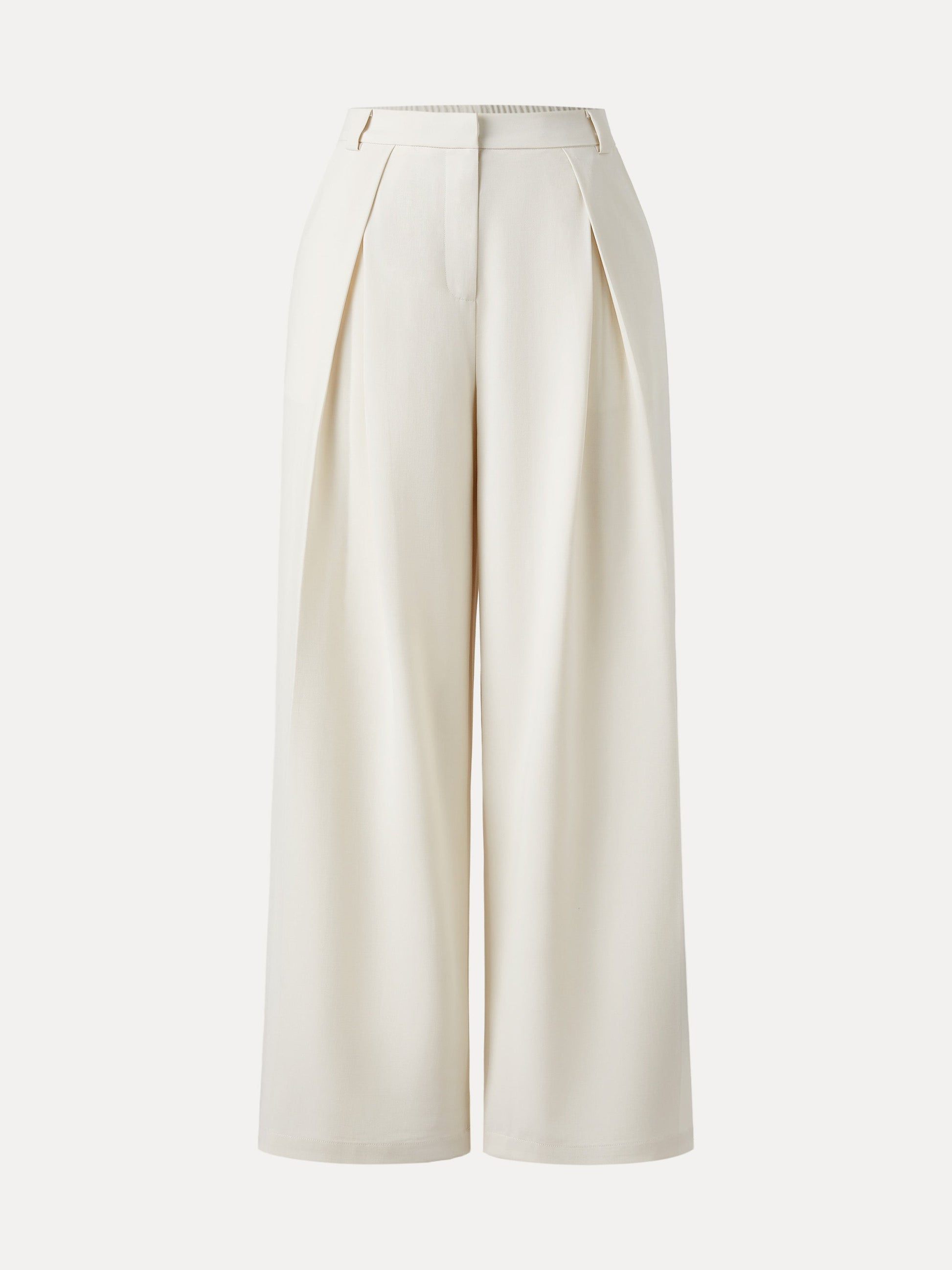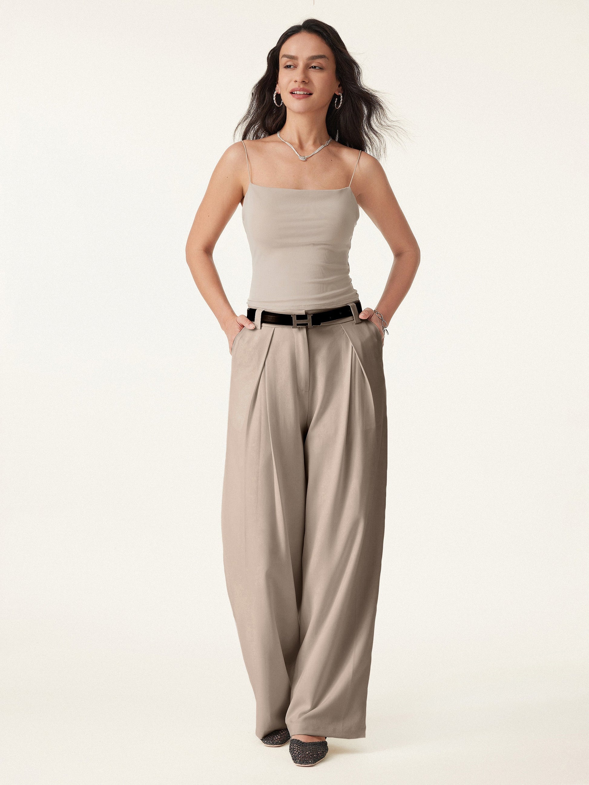 Tencel-Linen Pants Wrinkle-Free Tucked Wide Leg Trouser