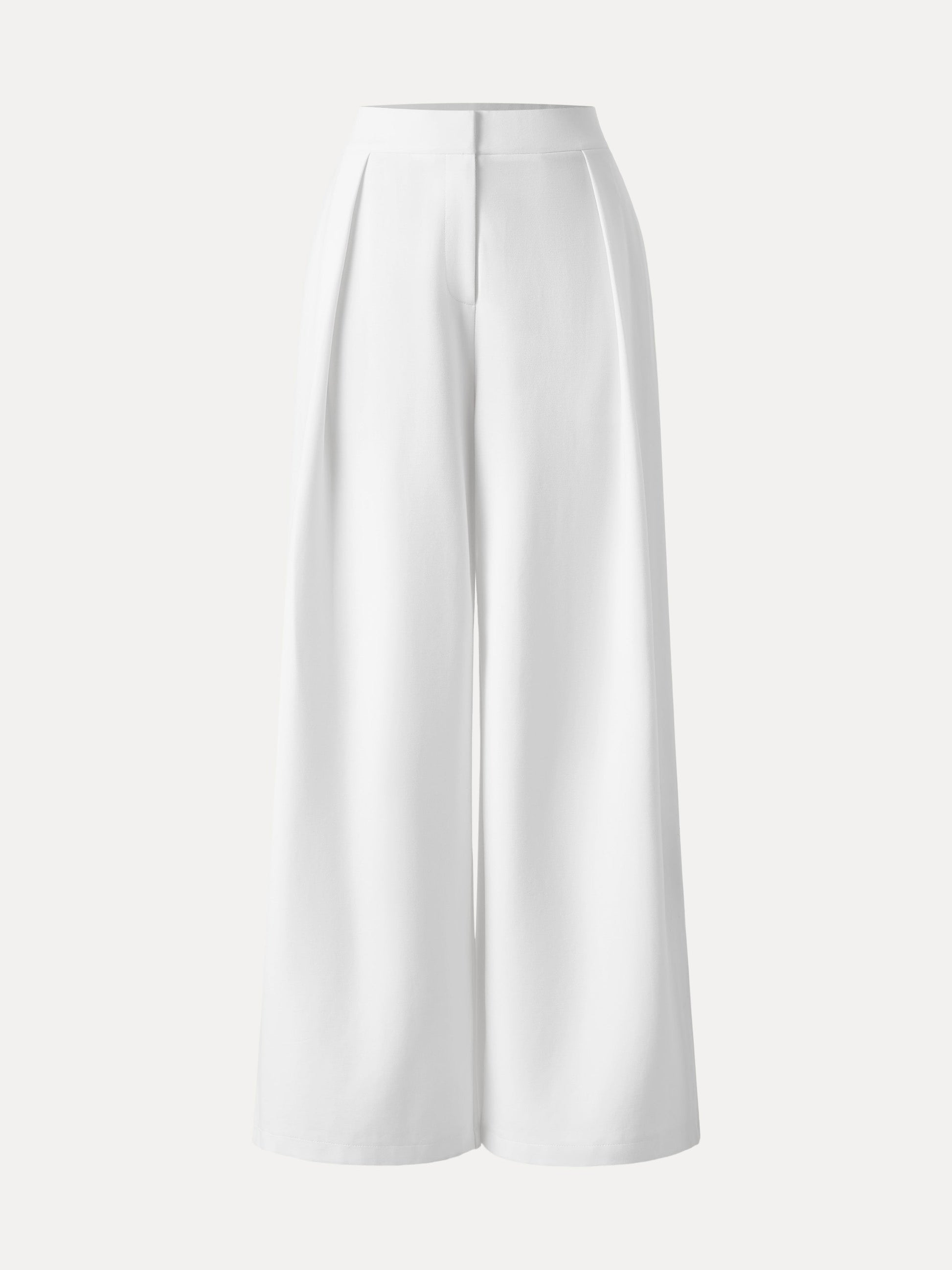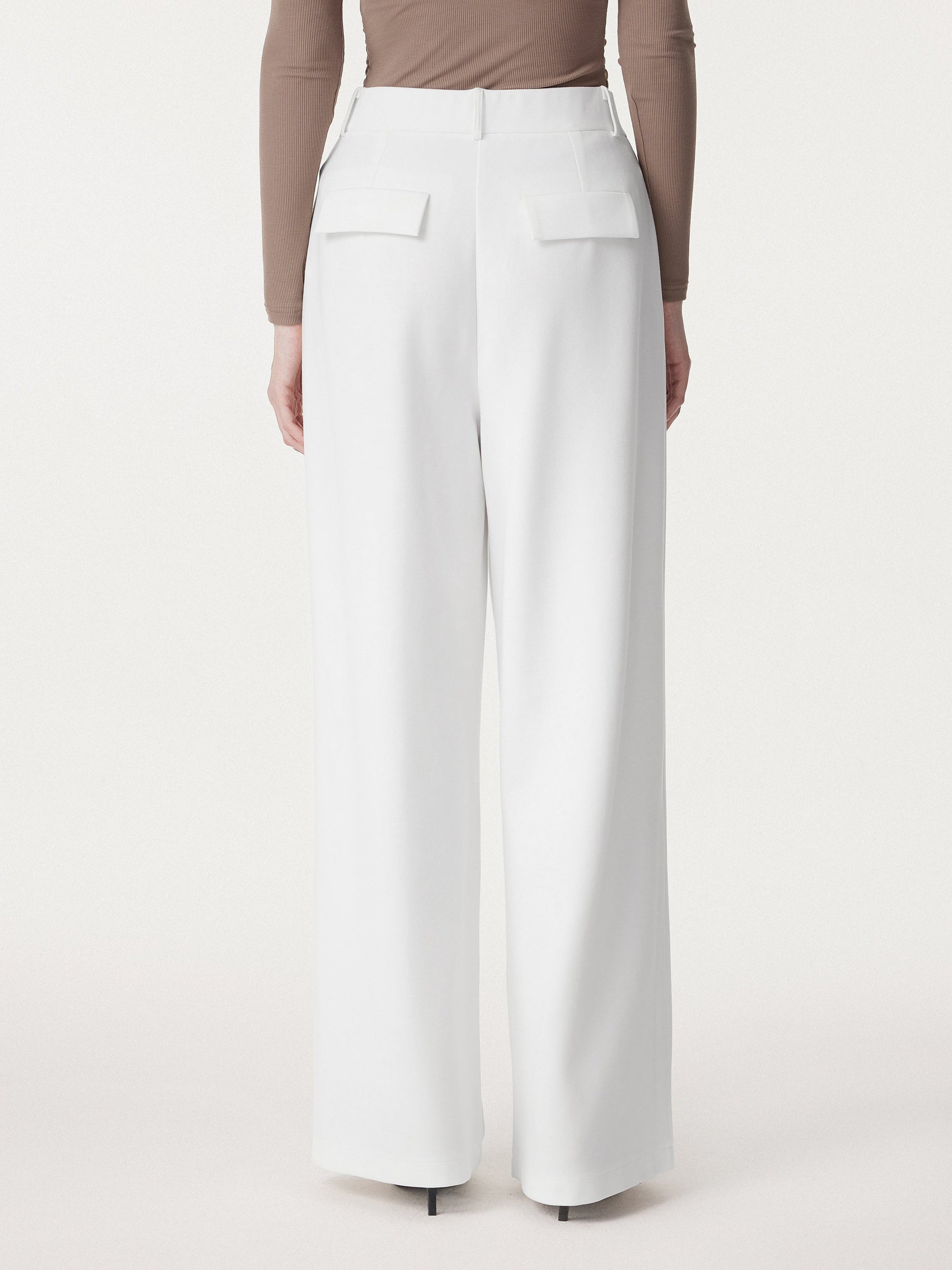 Non-sheer Airy Mid Rise Pleated Airy Trouser with Pockets