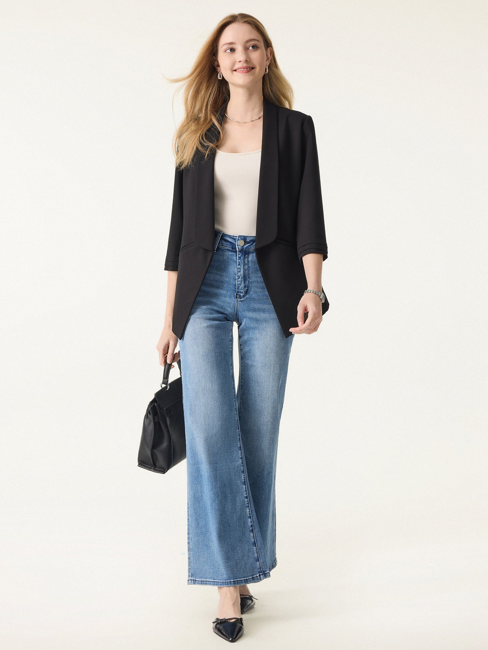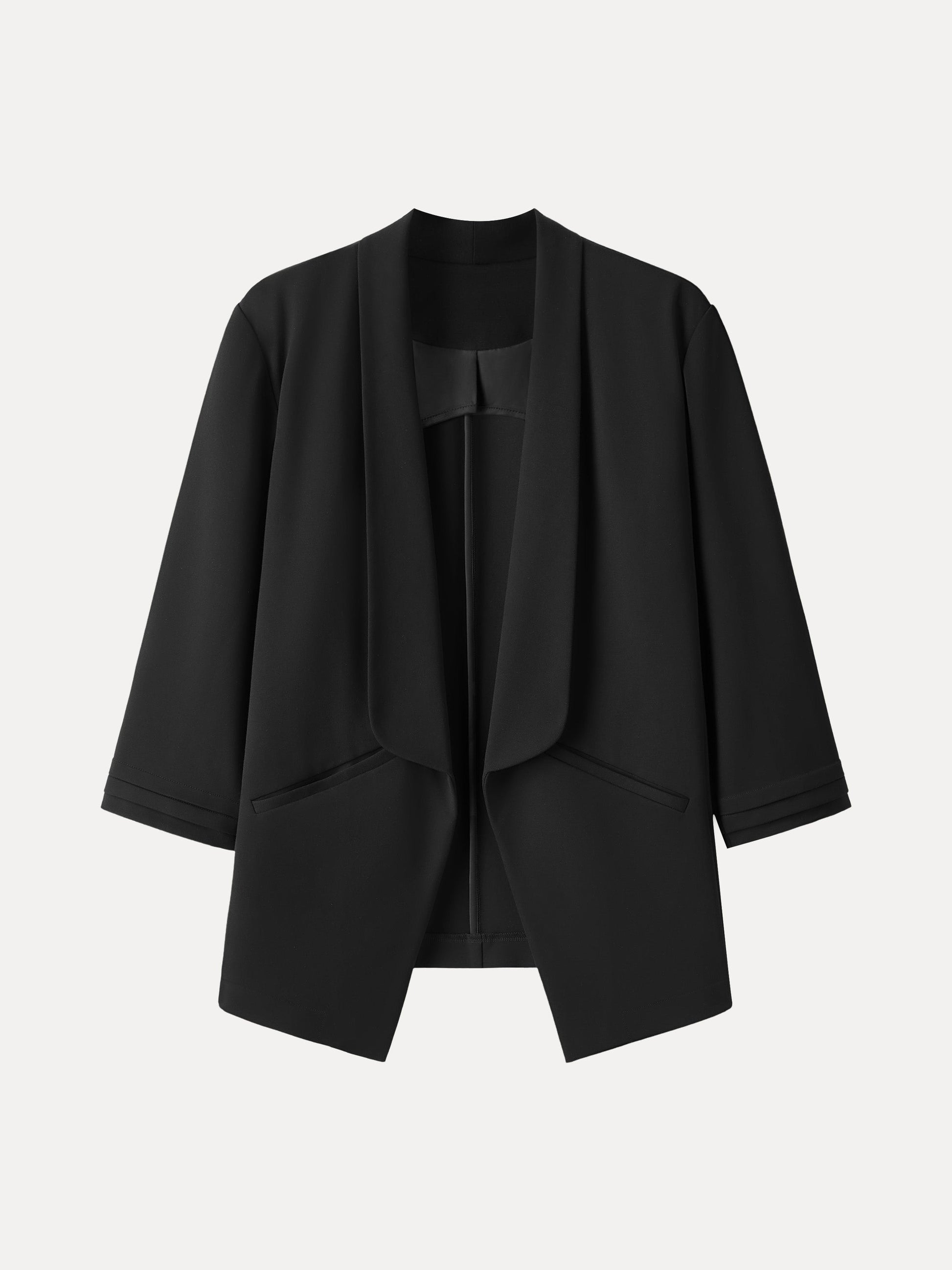 Stretch Ponte Shawl Lapel 3/4 Sleeve Blazer with Pockets