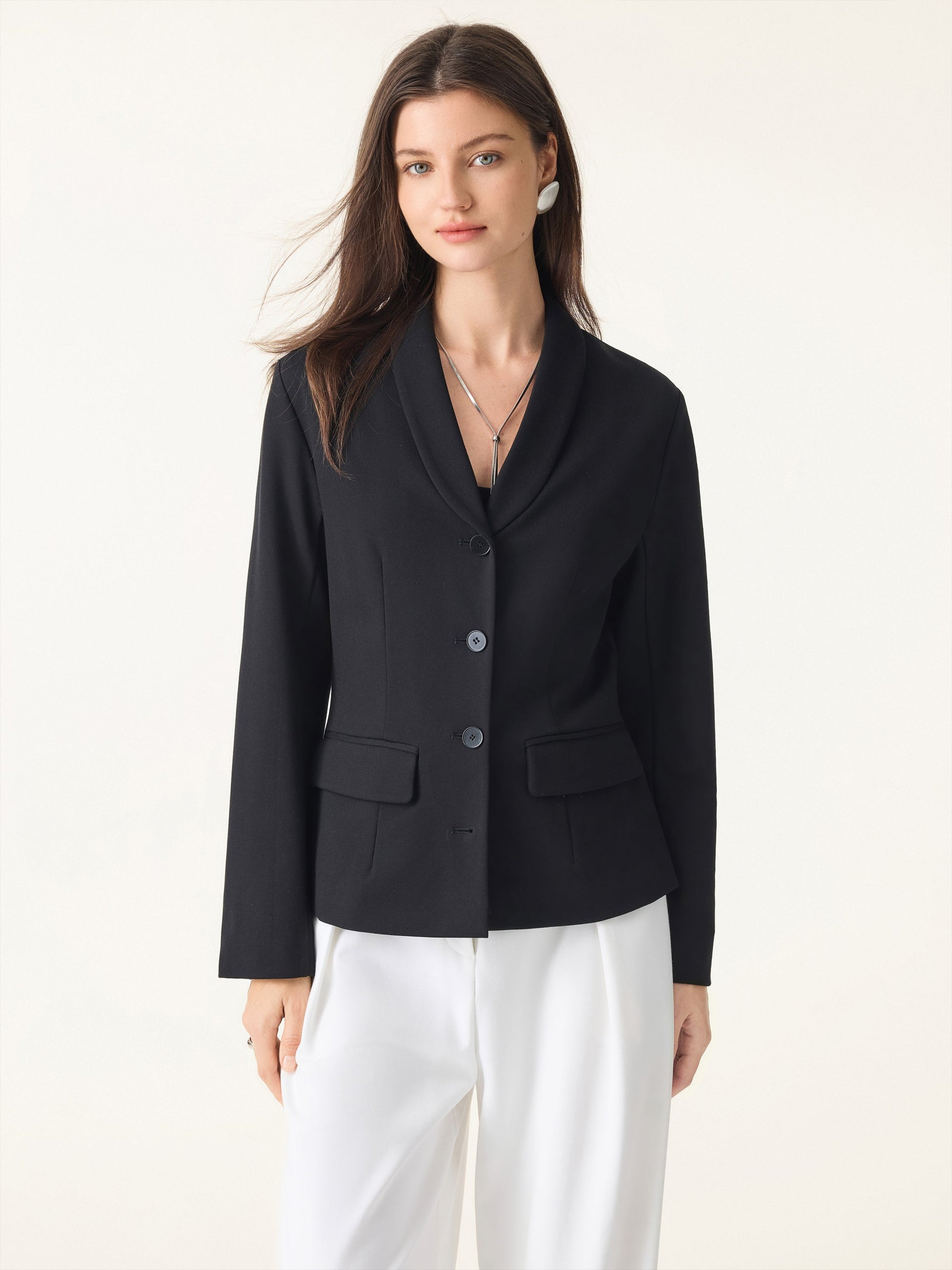 Stretch Shawl Lapel Button Front Blazer with Pockets