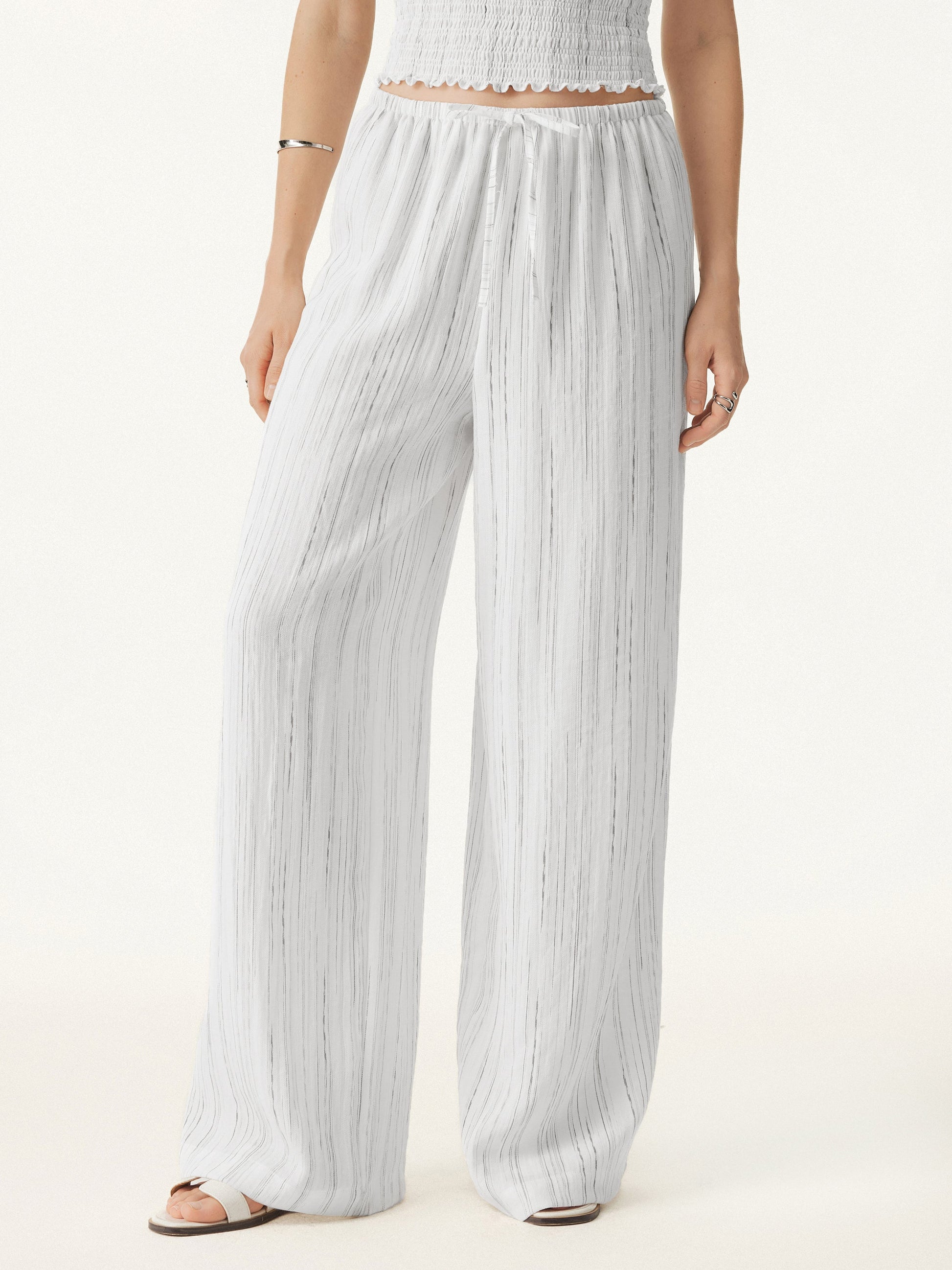 Summer Classic Striped Wide Leg Pants with Pockets