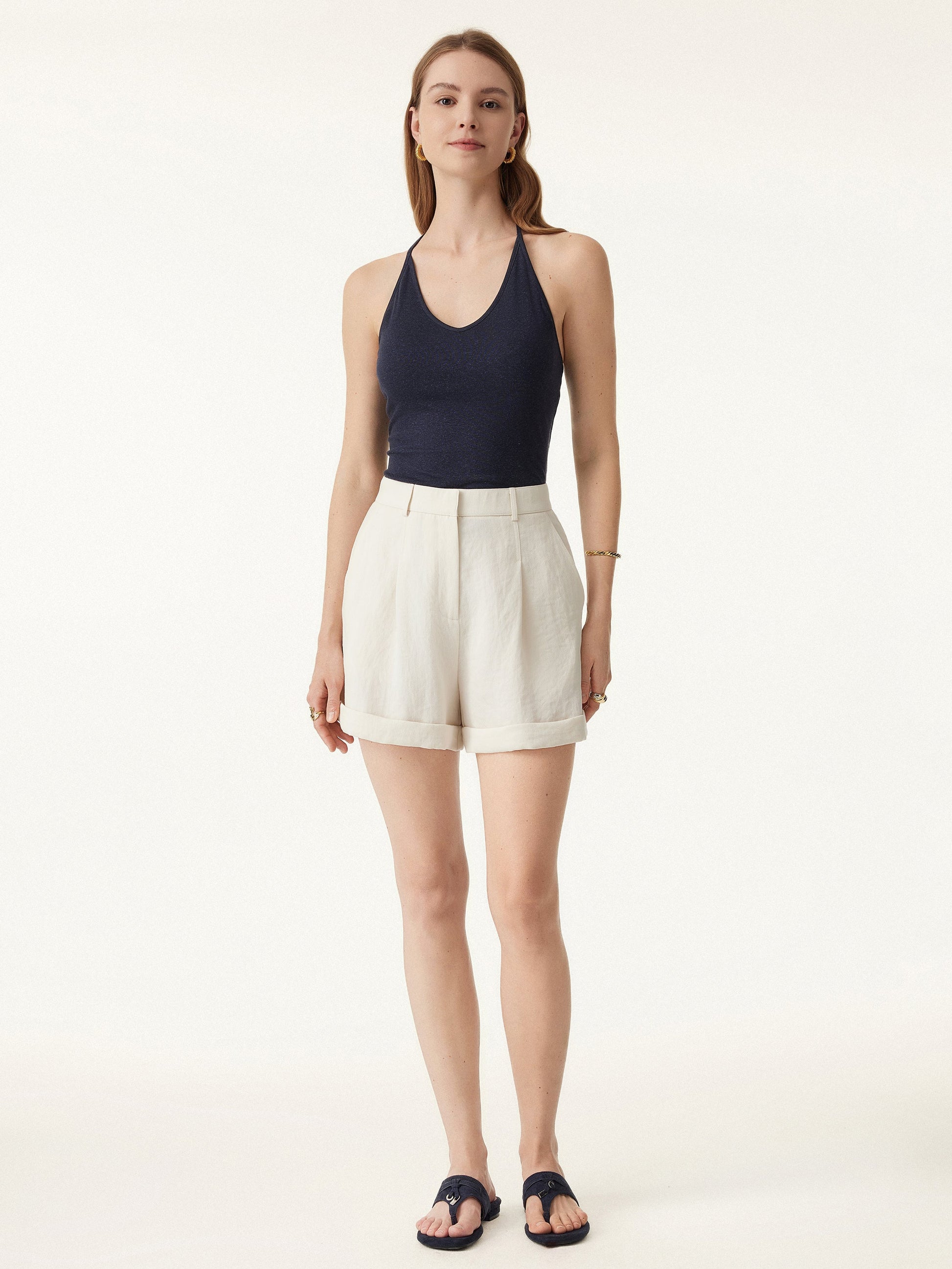 Wrinkle-resistant High Rise Cuffed Linen Shorts